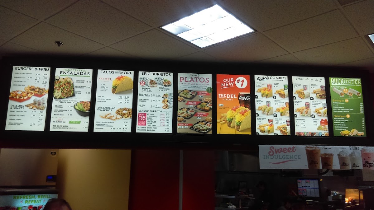 The menu also shines with its satisfying meals like the Del Tacos Meal, offering two of their famous crunchy tacos paired with crispy fries and a refreshing drink. The beer-battered crispy fish tacos and grilled chicken tacos meals deliver fresh, vibrant flavors that make each bite memorable.